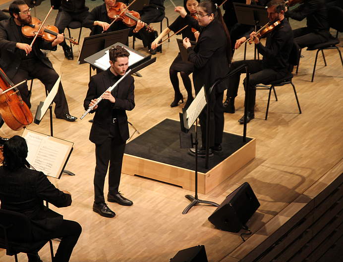 A light-hearted opening with Ibert's Concerto for Flute and Orchestra, played by our talented principal flute Loïc Schneider under the direction of Jonathan Nott.