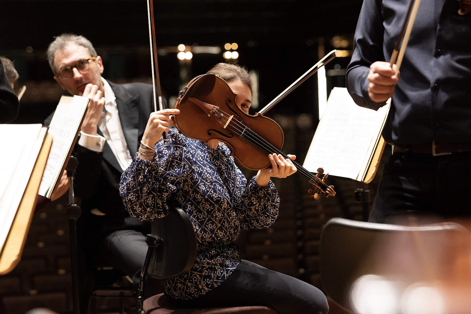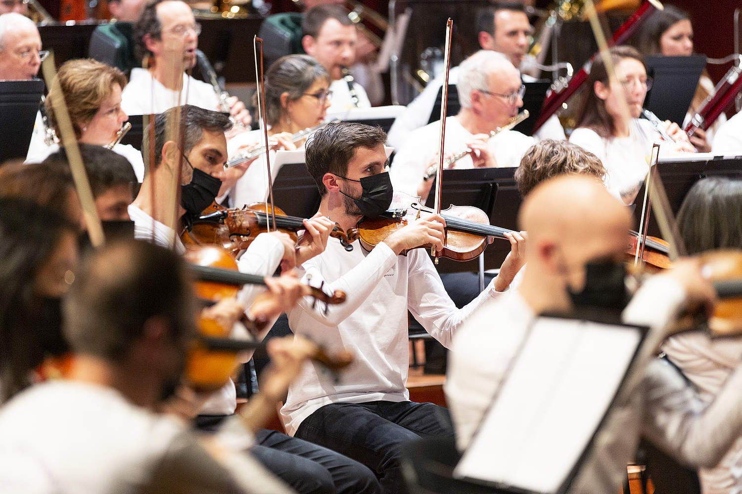 Roman Filipov, Claire Dassesse, Rosnei Tuon violins, Jarita Ng viola, Léonard Frey-Maibach cello, Sarah Rumer flute, Benoît Willmann clarinet, Francisco Cerpa Román bassoon, Arthur Bonzon timpani, Christophe Delannoy, Michel Maillard, Michael Tschamper, Marion Fretigny, Mathis Pellaux percussion.