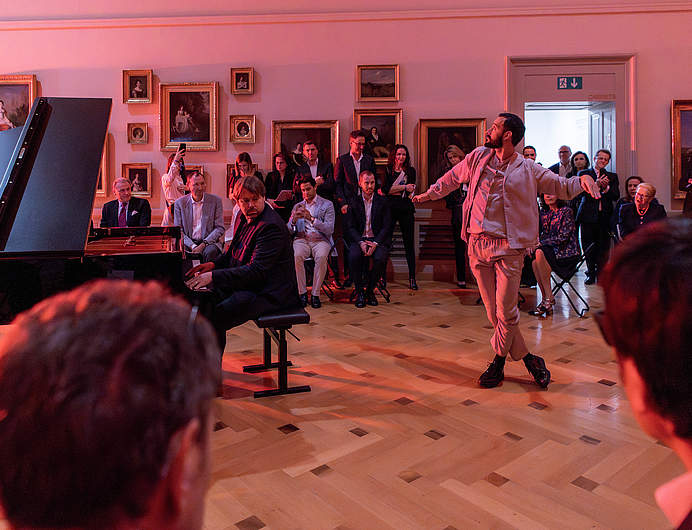 Gala de soutien à la Fondation Henri Dubois-Ferrière Dinu Lipatti au Musée d'Art et d'Histoire de Genève, avec le pianiste Marc Perrenoud, le danseur et la danseuse Mathieu Forget et Victoria Dauberville et un ensemble de musiciennes et musiciens de l'OSR dirigés par Zofia Kiniorska.