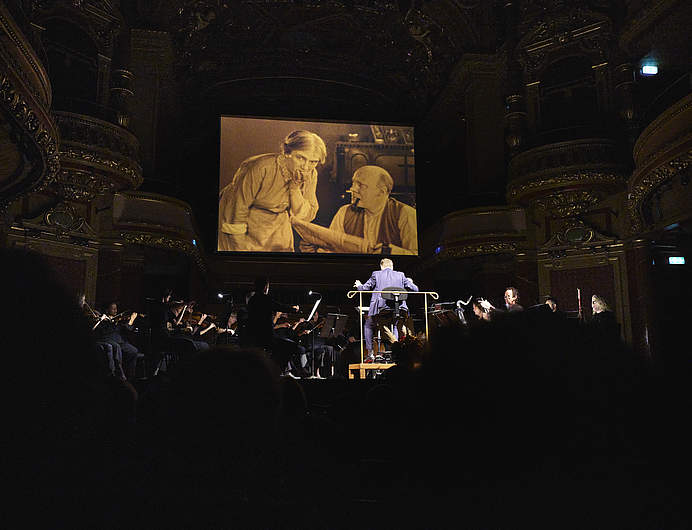 Depuis plus de cent ans, Le Kid remplit les salles de rires et de larmes. Le Victoria Hall, décoré pour l'occasion par Fleuriot fleurs, n'y a pas échappé en version ciné-concert donné par l'orchestre sous la direction de Philippe Béran.